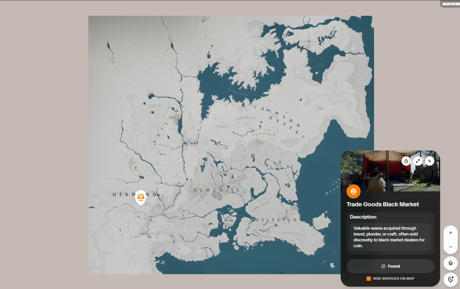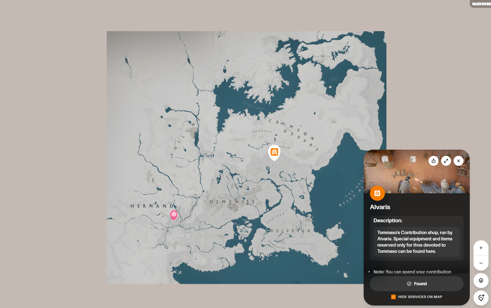 - ⭐ Очки вклада — зарабатываются за квесты фракций, выполненные запросы и добрые дела в регионе. Тратятся в региональных магазинах вклада. Можно иметь разную репутацию в Хернанде и Демениссе. Каждый уровень вклада стоит 100 очков и даёт 1 очко на покупку.