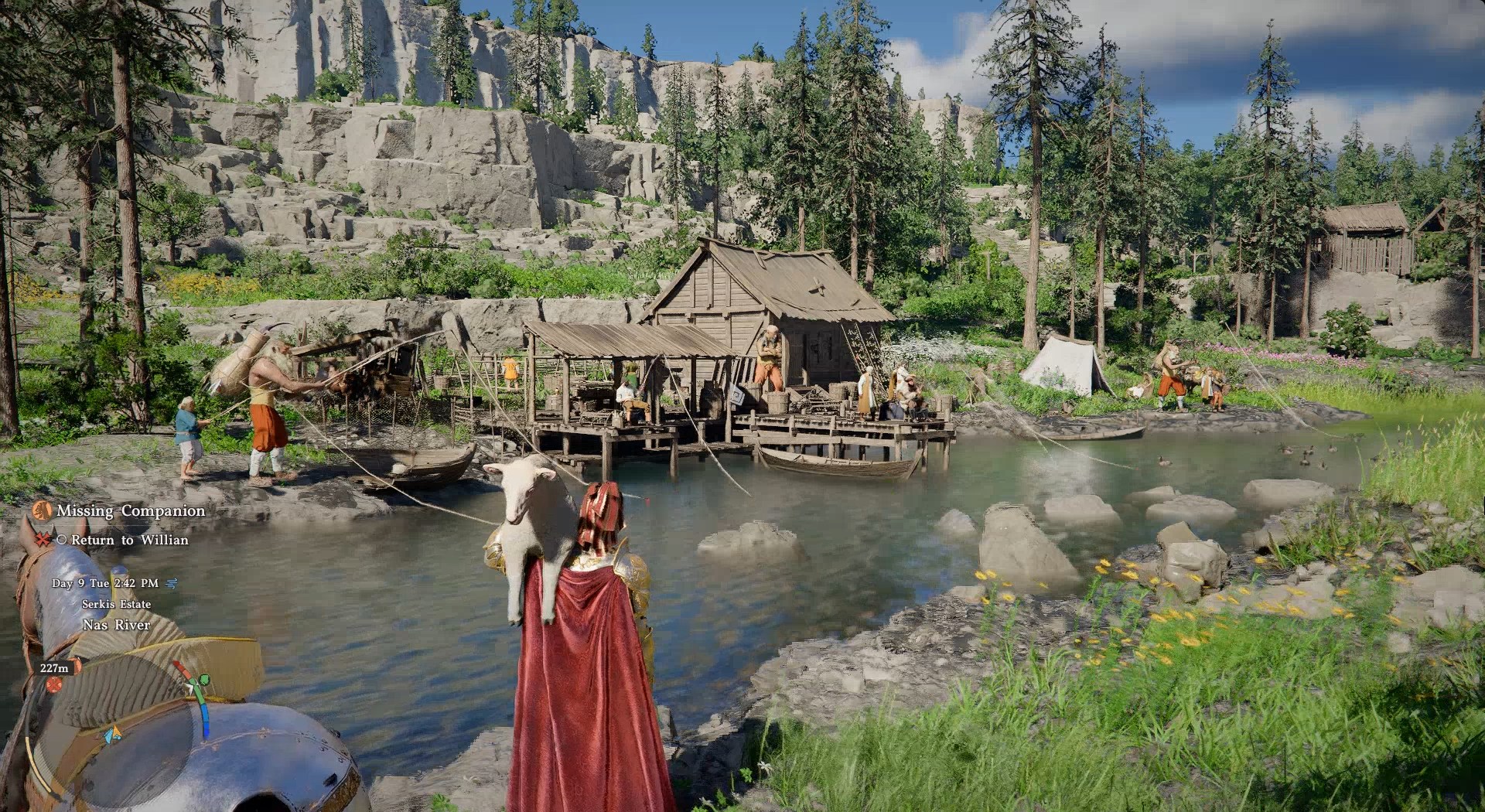 Сразу после выхода Клиффа из Бездны — остановитесь и посмотрите направо. NPC рыбачат. Зажмите кнопку наблюдения, пока не заполнится полоса. Это откроет рыбалку и даст базовую удочку. Есть бесплатная удочка у реки к югу от Хернанда, рядом с ящиками. Тонкая удочка за 10 серебра даёт небольшой бонус скорости, но не стоит покупки на старте.